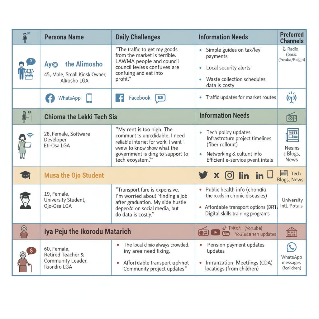 We developed a comprehensive, data-driven strategy to overhaul the LSG's approach to digital communication. Our framework was built on a foundational mission: "To build a #GreaterLagos by empowering every resident with timely, accessible, and actionable information; fostering transparent dialogue; and demonstrating a government that listens, cares, and delivers."